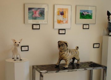 We chose to limit our art to dogs and cats - mine being paintings and his being ceramic sculptures. PY began working on his art in December - I didn't even want to think about it back then! But his ceramic sculptures take much longer for him to do than my paintings do for me, so it was smart of him to get started early. He created 10 sculptures and I had 12 paintings.