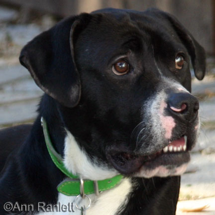 You may have noticed that my last few watercolor dog portraits have been purple. I have a simple explanation for that. The latest batch of portrait commissions have included black, dark brown or steel grey dogs. For my watercolor Petzazz portraits, I like to use vibrant and/or bright colors instead of the critters' natural coloring. I still try to use colors that represent the pet's natural coloring though. So I've found that purple is a perfect color for black or dark dogs. It "reads" as a dark color but it's vibrant and interesting.
