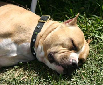 A tired Pit Bull. This guy was resting at one of the vendors' booths