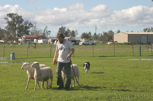 My "always up for a dog adventure" friend Sandy and I attended a sheep herding clinic last month. We (and her cattle dog Red) were just spectators, but other folks brought their dogs to either have them evaluated for their potential as sheep herding dogs by Ian Caldicott or to actually have some one-on-one instruction time with Ian (a sheepdog trainer).