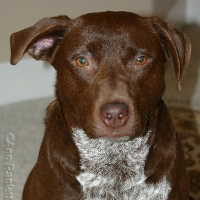 The other portrait is of Bella, a pit bull/rottweiler mix, painted in my Petzazz style in watercolor on Yupo. The portrait is 8" x 8".
