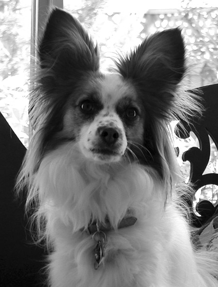 Sparkles is a papillon and her name really suits her - she's an active, enthusiastic, friendly dog. I've known her for many years and I don't think she's slowed down yet! Her owners have commissioned portraits of their other pets (Gizmo, a papillon mix and Foster, an orange tabby) and Sparkles has been on the "to do" list for a while. I had taken photos of her, but the photo we decided to use for the portrait is one that her owners provided some time after my photo shoot. Yet more time passed and I started working on black scratchboards. This portrait project finally gelled when I realized that a black scratchboard would be the perfect surface for Sparkles' portrait. I floated the idea past my clients, and although this was going to be a bit of an experiment, they agreed. This is the first time I've used my ink wash technique on a black board. I was confident that it would work, but there was no way to know until I actually did it!